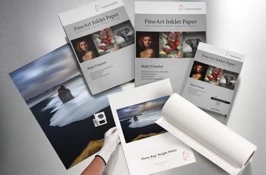 Hahnemühle FineArt Baryta is a bright white, cellulose-based FineArt inkjet paper with an inkjet coating specially tailored for FineArt use. The clearly visible, exquisite felt structure lends the paper its lovely soft feel and tactile surface texture to produce prints with a stunning three-dimensional quality and depth. The high-gloss premium inkjet coating guarantees outstanding print results with perfect reproduction of colour and detail, deep blacks and striking contrasts. The barium sulphate within the coating gives FineArt Baryta the feel of a traditional analogue baryta paper and makes it a popular alternative for inkjet printing. The acid- and lignin-free FineArt inkjet paper meets the most exacting requirements for age resistance. FineArt Baryta is a versatile classic for FineArt applications and sets standards in the printing of both black and white and colour photographs.